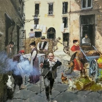 Prof. Francesco Tammaro, kunstner, som er representert i mange gallerier bde nasjonale og internasjonale, har gtt p kunstakademiet. Veldig bra verk, mler 40 x 24 cm, med stor fargekontroll og utmerket malerkvalitet. Det vil bli levert med et autentisitetssertifikat og en brosjyre av samme kunstner, signert for hnd og med autentisitet p baksiden.