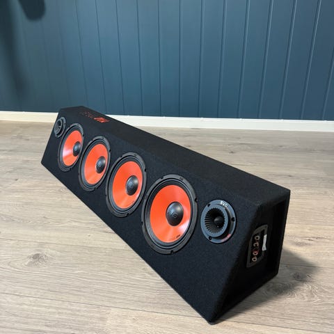Boksen har 4 Bass Habit SP200M bass/mellomtone og 2 Bass Habit SP25A horndiskanthøyttalere installert, og måler bare 92 cm.