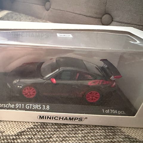 Fantastisk, hykvalitets skala modell av et tysk ikon: Porsche 911 GT3 RS fra 2022 i en nydelig konfigurasjon.