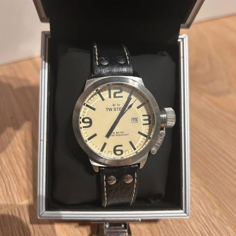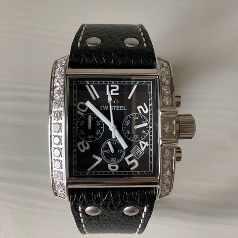 Et vakkert herreur fra TW Steel fra Maverick-serien. Referansenummer TWS-MS31. Klokken er laget med en stl-kasse og har en svart PVD-belegg. Den er lett lese takket vre den iynefallende svarte urskiven og gule/cremekledde detaljer. Utstyrt med datovisning ved klokken 3-posisjonen. Utstyrt med et kvalitets quartz-urverk (Miyota 2417).