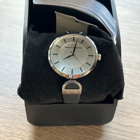 Klokken ligger i en stlkasse og leveres med de viste (hvite) tilbehrene.