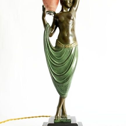 Denne art deco seilbten er laget i Dinanderie-teknikk. En hndverksmetode som er oppkalt etter kobberkokerne i Dinant. Det er innlagt ulike metalltyper og polert jevnt sammen. Farten til denne bten og de stramme linjene p seilene og blgene gir dette bildet virkelig fart. Den trebaserte sokkelen gjengir blgene vakkert.