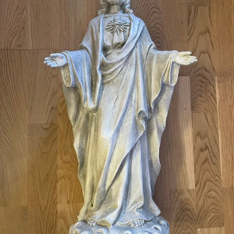Helt feil i god stand, skulpturen er laget av gips og har noen skader.