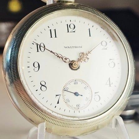 Til salgs str et vakkert antikt lommeur fra den anerkjente American Waltham Watch Co. fra 1904. Klokken er i en bemerkelsesverdig god originaltilstand og er fullt funksjonell.