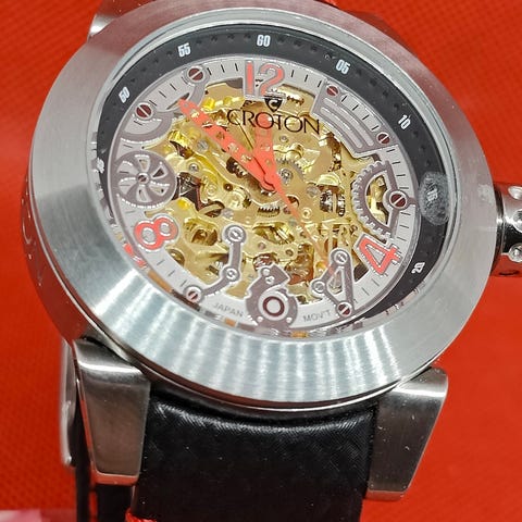 Med arabiske tall og datofunksjon - gul urskive, automatisk opptrekk mekanisk mekanisme.