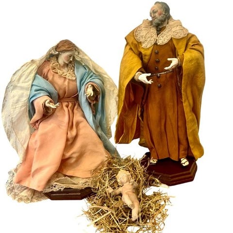 Vintage messing filigran religist egg, laget etter de bermte Faberg-egg. Det kopperfiligran-egget kan pnes, og deretter kommer et vakkert dekorert treegg til syne. Dette egget er malt med et klassisk ikon av Maria og Jesus p den ene siden, og et russisk kors p den andre siden. Hele egget er i utmerket stand.