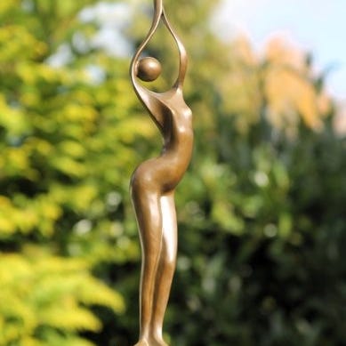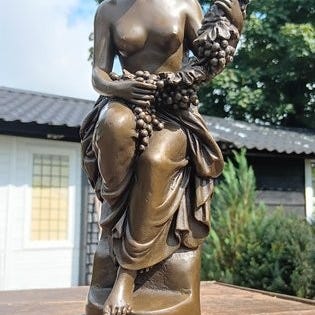 Detaljert hndlaget bronsefigur av en vinget kvinne.