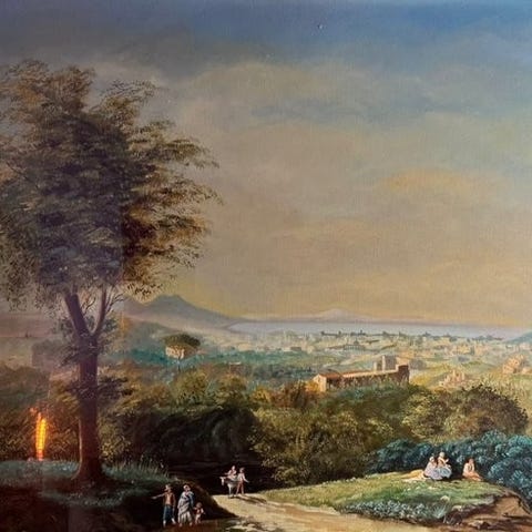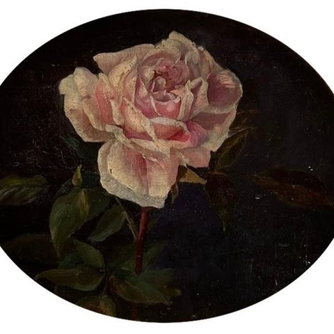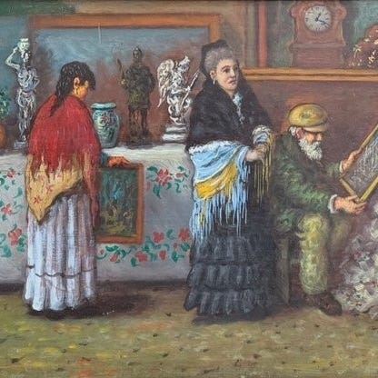 Italiensk maleri fra midten av 1900-tallet. Olje p masonite som skildrer en elegant stilleben, vase med blomster, utfrt med god kunstnerisk hnd. Et vakkert mlt maleri som passer godt som dekorasjon, innrammet med en lakkerte treramme som har noen sm tegn p tidens tann. Elegant kontrast mellom blfargen p vasen og fargene p kronbladene (se bilde). Et godt opplyst verk som er en del av et par (se bilde og spr om pris for paret, hvis tilgjengelig). I god stand. Lysbildet mler H 73 x B 58 cm.