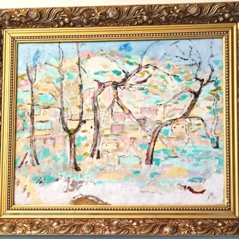 Oljemaling p panel, 27 34 cm; med ramme 36 45 cm.