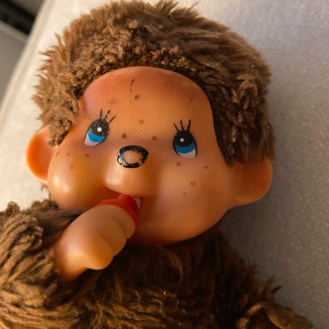 Sjelden peluche E.T i vintage simili skinn fra 1982, dimensjoner: 22 cm hy og omtrent 13 cm bred.
