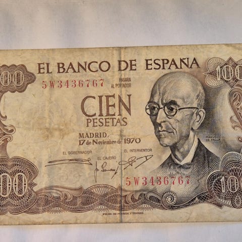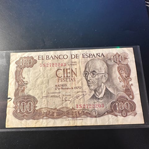 2 mynter p 100 pesetas i slv (38 g, 80 %) fra perioden av ESPANSK STAT (1936-1975) Francisco Franco.