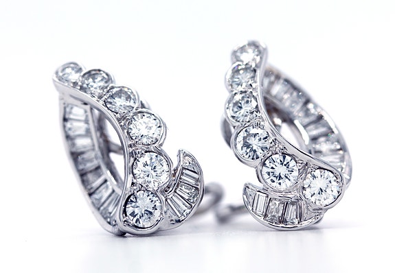 Nydelig diamant øredobber i 14k hvitt gull (skrue bakk), basket fatning, med store kvalitetsdiamanter (runde slipte) som er 100% naturlige og ikke behandlet (CE) på noen måte.