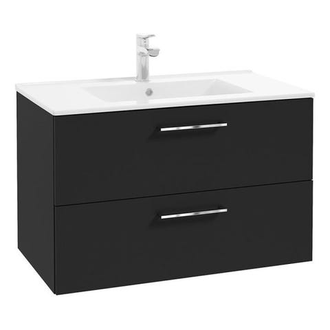 Møbelpakke - 100 cm servantskap 2 Skuffer, Underskap m/ Skittentøyskurv med benkeplate,toppmontert servant, servantbatteri