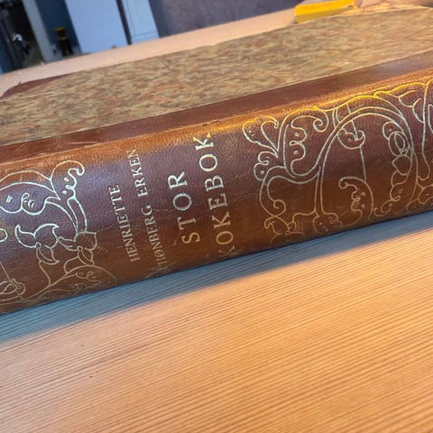 Fru Henriette Erken Schønberg. Stor Kokebok. For større og mindre husholdninger. Attende økede utgave. Oslo. Forlagt av H. Aschehoug & Co (W. Nygaard) 1947