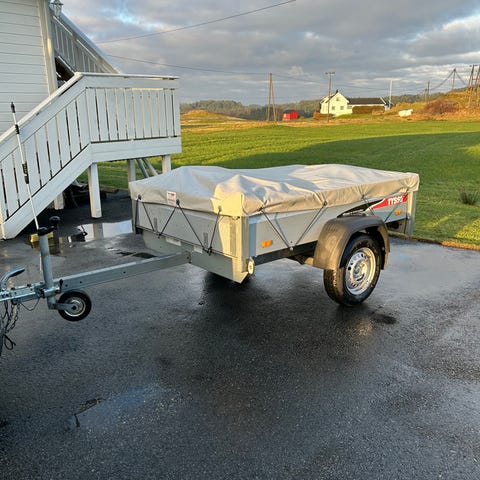 Er utstyrt med bremser! Så her kan du ha ei totalvekt på heile 1300kg.