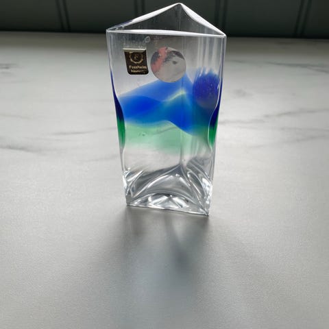 Denne vasen er nydelig glasskunst som ikke mange andre har, da den ikke var solgt i stor opplag i Norge.