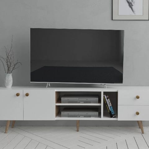 Denne solide TV-benken har et trendy, men praktisk design og vil bli midtpunktet i rommet.