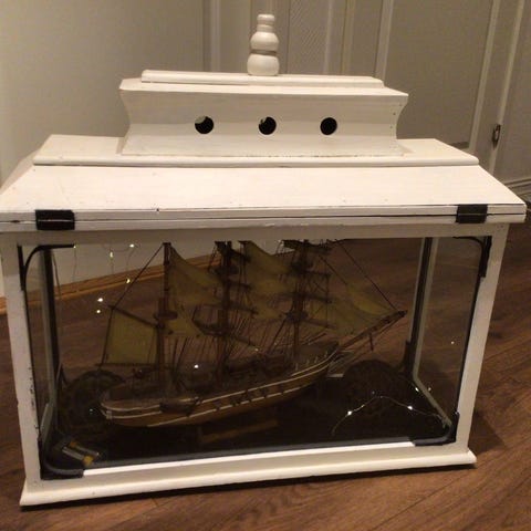 Gammel galeon Carabela Santa Mara laget i metall med slvbelegg, bakdelen formet som en blge, plassert p en tresokkel med svart flyelsunderlag. Dens tilstand er god, har vrt oppbevart i mange r. Bakdelen av blgen viser omrder med slitasje eller rengjring. Ideell som nautisk dekorasjon. Det flger med omfattende fotografisk dokumentasjon for vurdering og vurdering av det som er presentert. Det vil bli brukt spesiell emballasje p grunn av stor volum og vekt. Forsendelser utenfor Det europeiske fellesskap eller Europa og uavhengige land er ikke inkludert i fraktprisen p Catawiki, og vil medfre ekstra fraktkostnader.