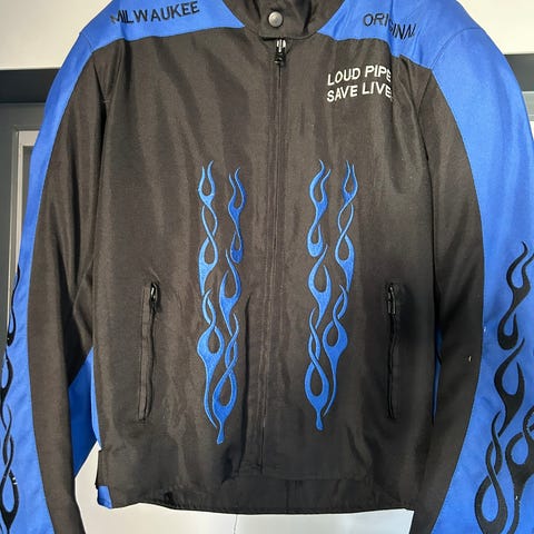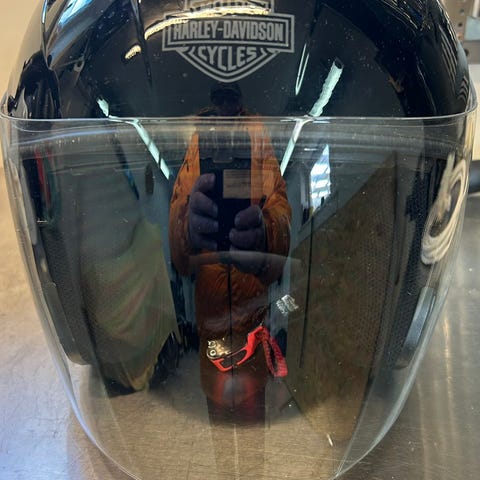 Diverse Harley-Davidson-effekter og kjøreutstyr, blant annet skinnjakker i str. XL, skinnbukse, MC-trekk, metallbokser, emblemer og annet tilbehør.🔹 Harley-Davidson skinnjakke (Cockpit), str. XL, – brodert logo