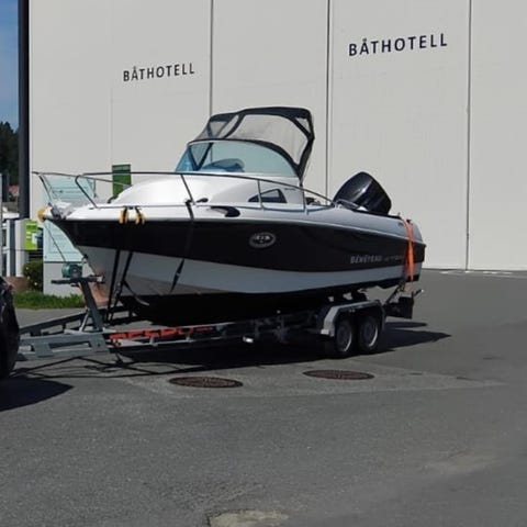NYHET TYSSE 6684. Opplagshenger for større båter. Dette er en boggihenger med selvjusterende vugge. Nyttelast på 2150 kg for båtlengde inntil 23 fot.
