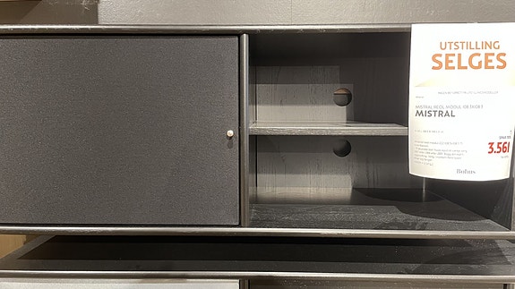 Mistral TV-reol med klaffedør i tekstil selges fra utstilling