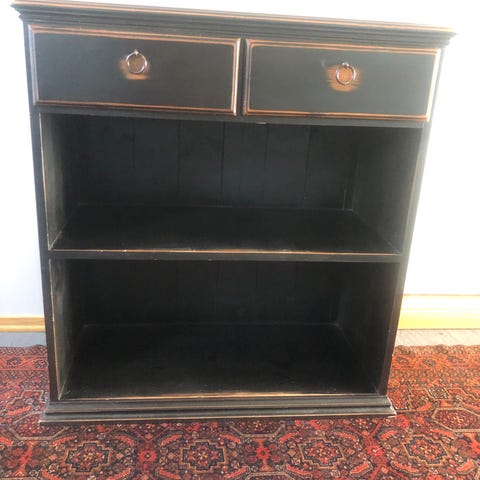 SOLGT!Vi bytter ut utstillingen i inngangspartiet på visningshytta Storeble fra Telemarkhytter på Hellerudsletta. Dette er en solid dobbel kommode i heltre, malt i Askesort med gråoljet eikeplate.Kommoden har solide skinner med demping. Kommoden ble satt inn der i 2019 og har kun vært brukt til utstilling. Hel og fin, men siden den har stått i utstilling kan likevel ubetydlige sår eller rifter forekomme. Kan fraktes hel eller i to deler. Veil. pris kr. 32.500,- selges nå med 50% rabatt.
