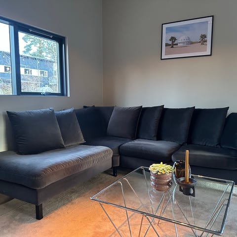 Selger en stilren og komfortabel Bolia Scandinavia 3-seter sofa med sjeselong og tilhørende puff. Sofaen har et tidløst design og passer perfekt inn i moderne skandinaviske hjem.