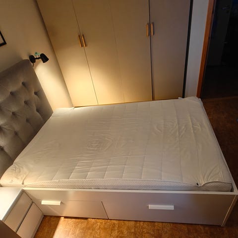 Leveringen inkluderer kun en sengeramme. Madrass er ikke inkludert. Du kan sjekke butikken vår for passende madrasser.