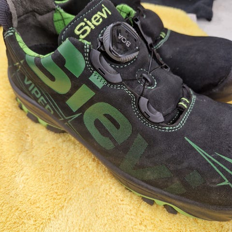 To par nye vernesko. Sievi AL Hit 3 XL+ er en lav modell i str. 44 med S3 HRO-klassifisering – tåler varme opp til 300 C og har bred lest. Cofra New Reno er en høy modell i str. 41 med ståltåhette og S3 SRC-klassifisering for ekstra sklisikring. Begge par har vannavstøtende overdel og spikertrampsåle.🔹 Sievi AL Hit 3 XL+ S3 HRO, str. 44 – bred lest, varmebestandig yttersåle