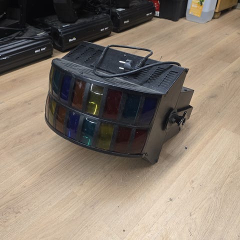 Scene- og effektutstyr fra kjente produsenter som ADJ og Laserworld. Utstyret omfatter bl.a. røykmaskiner (Fog Fury Jett og VF1300), lyseffekter (Mini Dekker, Stinger II), samt RGB-laser (EL-400RGB MK2).🔹 ADJ Mini Dekker, 25W, AC100–240V, 50/60Hz