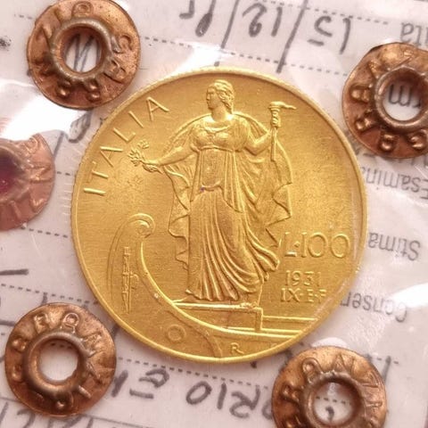 Fantastisk eksemplar av en gullmynt p 20 lire fra Vittorio Emanuele III, rgang sjelden 1923 R, i ekstremt god stand, vurdert av eksperter (periziata) qfdc