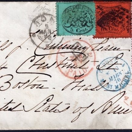 Forsendelse med forsikret verdi og filatelistisk frankering eller UPS-transportr.
