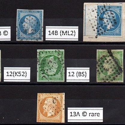 Frankrike 1849/1869 - klassisk Frankrike Crs, Napolon god verdi!! vurdering 2365 - Yvert Tellier 1, 5, 15, 33.