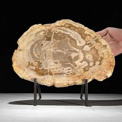 Fantastisk skive av forvitret tre på et tilpasset stativ. - Fossilt tre - 34.3 c