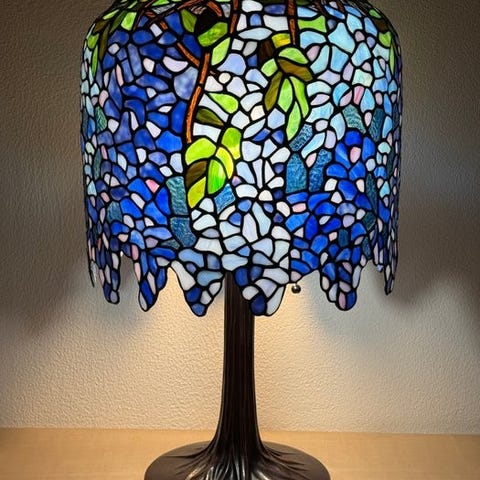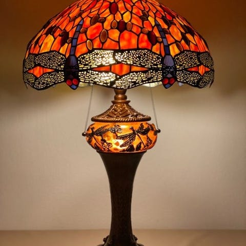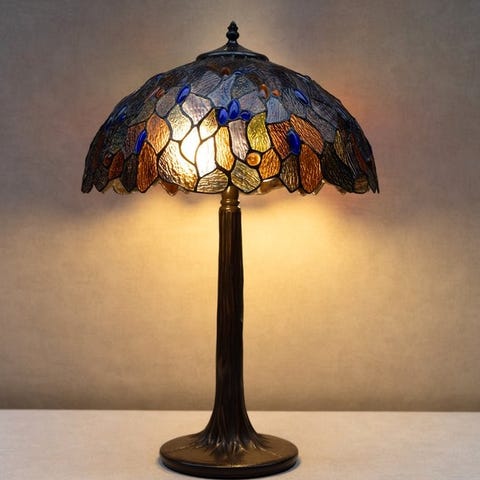 For unik og stemningsfull belysning velger du denne tidlse taklampen. Dette er alltid et passende valg for stuen, arbeidsrommet eller kjkkenet ditt. P den mten blir denne eksklusive taklampen et oppmerksomhetsskapende element i ditt stilige interir. De vakre effektene av farget glass kommer ikke bare til sin rett under elektrisk belysning, men ogs i dagslys. Hvis du alltid er p jakt etter en ekte oppmerksomhetsskapende detalj i interiret ditt, som legger til det lille ekstra, er denne hndlagde Tiffany-stil lampen akkurat det du leter etter.