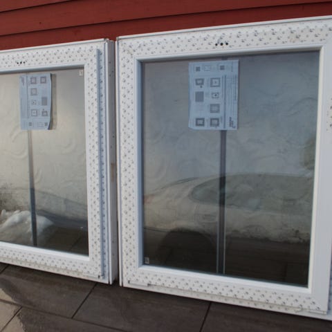Tømmer lageret for rester av Alutile fasadeplater, assosierte farger.