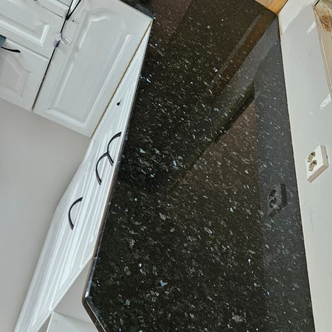 Vi har noen benkeplater i laminat for salg i mønsteret "Cream Navona".