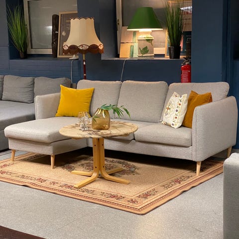 Nok en moderne og anvennelig sofa med sjeselong i butikk! Dette er den mest populære sofa-varianten vi har, og den blir nok ikke stående så alt for lenge hos oss før den finner seg et nytt hjem <3