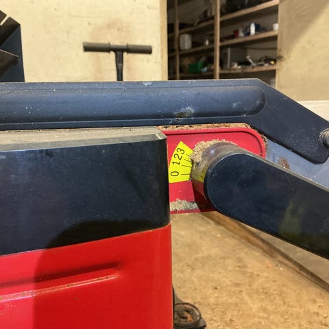 Maskinen har høydejustering med håndhjul, justerbare anlegg, og massivt arbeidsbord i stål.