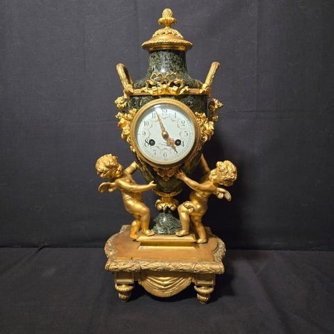 Tre skuffer, formet og perfekt integrert i konstruksjonen, flger den buede fasadens forlp, slik som den formede marmortoppen, i utmerkede tilstand. Rike relieffer i forgylt bronse, med mascaroner, kjrlighetsknuter og motiver i Louis XVI-stil, pryder skuffer og ben, og fungerer ogs som beskyttende.