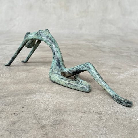 Vakkert kunstobjekt i stor strrelse laget av metall i matt beige farge.