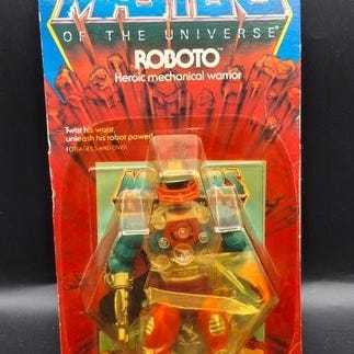 - 24 figurer i god stand, unntatt: Hordak (elastikken som forbinder bena er delagt) Lezor (halen er limt tilbake p plass og hyre arm er brukket); noen elementer mangler, som Dentos' vpen, Triklops' selety, Puantors brystplate, osv. Moduloc og Multibot er ufullstendige