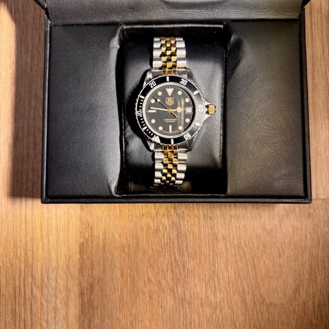 Den vintage Tag Heuer Black 1000 urskiven, til og med lsen, er robust og viser nyaktig tid, noe som gjr den til en flott investering for enhver klokkeentusiast. Bildene viser selve klokken. Undersk dem nye, de er en del av beskrivelsen.