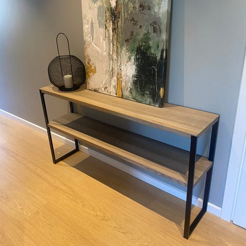 Woodstory konsollbord med hylle fra Kristensen Kristensen selges fra utstilling i møbelbutikk.