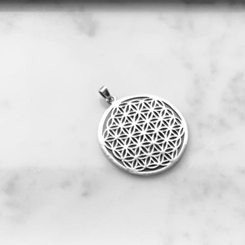 Flott Flower of Life Metall-anheng med chakra steiner.