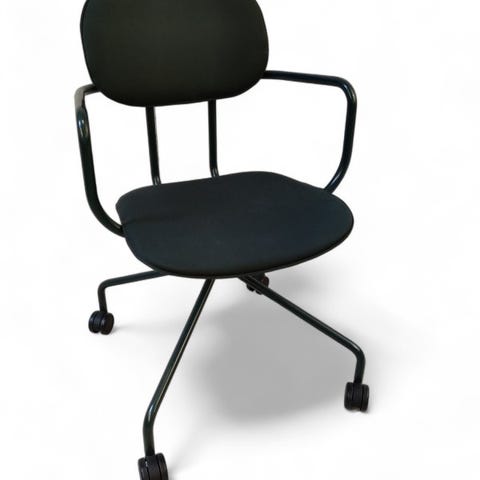 Stolen er enkel å plassere og kombinere med ulike bordtyper, og egner seg godt der man ønsker et ryddig, moderne uttrykk med fokus på funksjon og gjenbruk.
