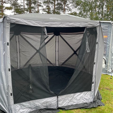 Front- og sidepaneler kan skyves ut for å redusere vekten og åpne forteltet