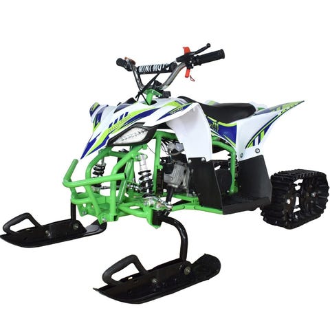Snow Fox snøscooter 49cc – Kompakt, lett og morsom Denne 49 cc snøscooteren med 2-taktsmotor fra Snow Fox, er et utmerket valg for nybegynnere og yngre førere som vil ha en trygg og underholdende introduksjon til snøkjøring. Med kompakt størrelse, lav vekt og enkel betjening er den lett å håndtere og perfekt for bruk på private områder. Den luftkjølte motoren gir pålitelig ytelse, mens snorstart gjør scooteren enkel å starte – selv i kaldt vinterføre. Kombinasjonen av ski foran og belte bak gir god stabilitet og fremkommelighet på snø. En bakre skivebrems sørger for effektiv og sikker nedbremsing. Med en makshastighet på opptil 30 km/t og en maks belastning på 70 kg, er dette en ideell snøscooter for lek, trening og korte turer.