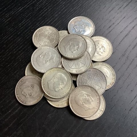 5 pesetas fra Amadeo I av Savoyen, r 1871, med stjerner tydelig synlige 18-74.