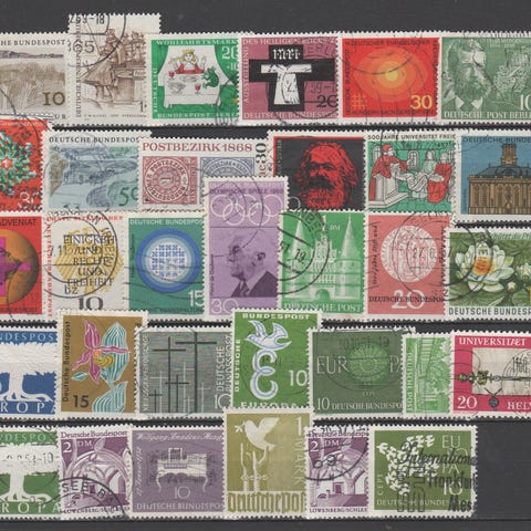 Danmark - d613) + Dansk Vestindien 1851-1990, mange bystempler med våpenskjold p